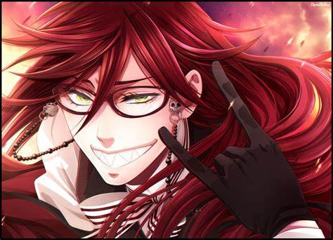 Grell has long, beautiful hair, and his eyes show how crazy he is. He is the Grim Reaper, and the color red is his thing. People in his community have a saying that the color red means beauty, which is why he always wears all red clothes.