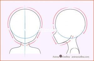 For the front view start by drawing an oval for the highest point of the head and to that add the base portion of the face. The base piece of the face should limits essentially as it goes down.