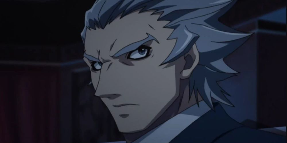 Providing character support Cain Warlock, a werewolf and vampire hybrid, is a member of Black Blood Brothers. He comes from a long line of witches as well. Despite being a vampire by default, he can transform into a formidable blue-coated wolf. He can hypnotise people and track blood pressure. His slanted brows and spikey grey hair give him a lupine-esque, almost bestial aura when he transforms into a vampire.